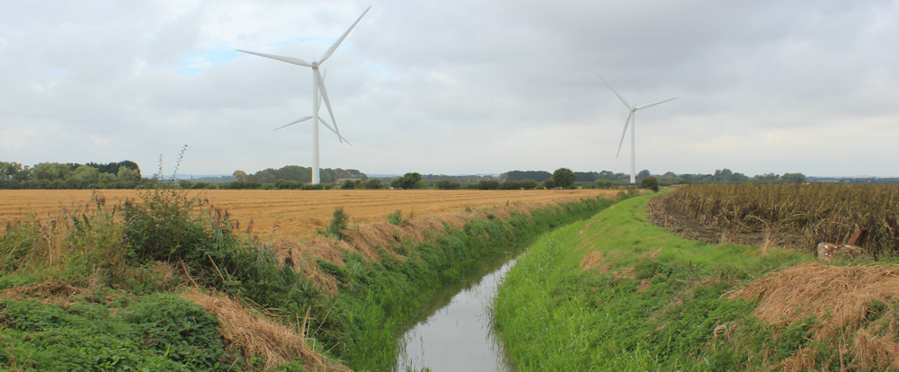 Now I’m surrounded by flat, Lincolnshire fields, intercut with drainage dikes. Wind turbines turn slowly in the morning breeze.