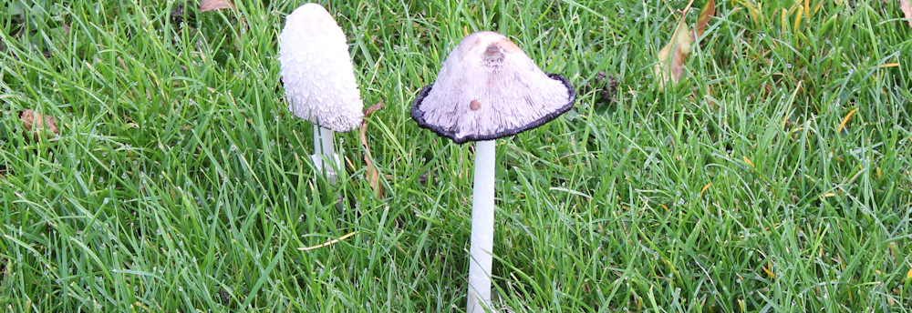 Somebody seems to have decorated their front lawn with plastic mushrooms – no, hang on, they’re real. Ink caps.