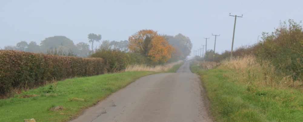 The road stretches ahead of me. It’s one of those murky mornings, and the end of the road is hidden in mist, so it looks like the route simply continues for ever.