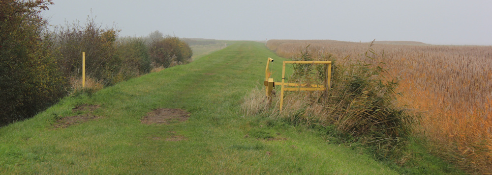 I reach a junction with a side-road, which I know is heading towards the coast – and towards the footpath that runs along the bank. It’s the same footpath I spent much of yesterday morning trying to get to.