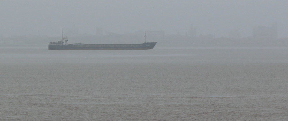 Out in the Humber, a large ship moves slowly along, it’s details obscured by the murk. Beyond, just grey shapes in the haze, I can make out buildings and features on the opposite bank.