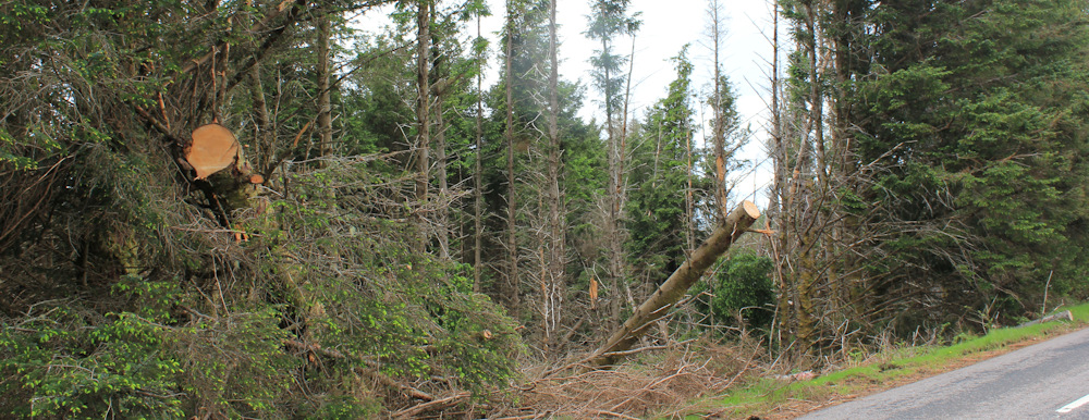 There is a forested area to my left, but what a mess! The neatly cut trunks are actually fallen trees that would have been blocking the road until cleared to the side. No doubt this damage was the result of one of the trio of storms that hit Britian over the last winter. What a shame. Sad to see these fallen giants.