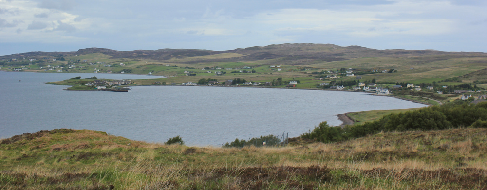 I’m looking across to a settlement on the other side of a little bay. Check my map. That weird little peninsula sticking out into the water is Aird Point (there are several Aird Points in Scotland – as I’ve remarked before, they’re very economical with names out here!).