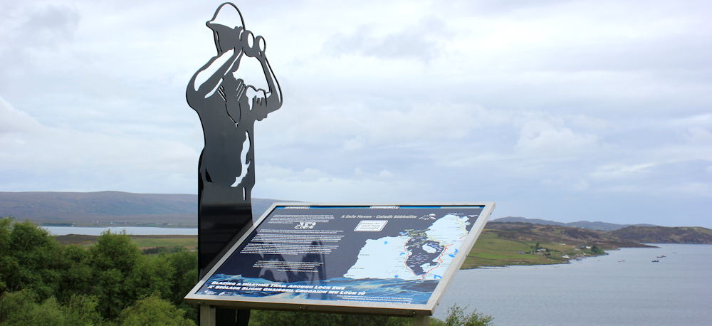 Beside me there is yet another sculpture commemorating the Arctic Convoys that once used Loch Ewe as their harbour. Is that guy looking out for dolphins too?