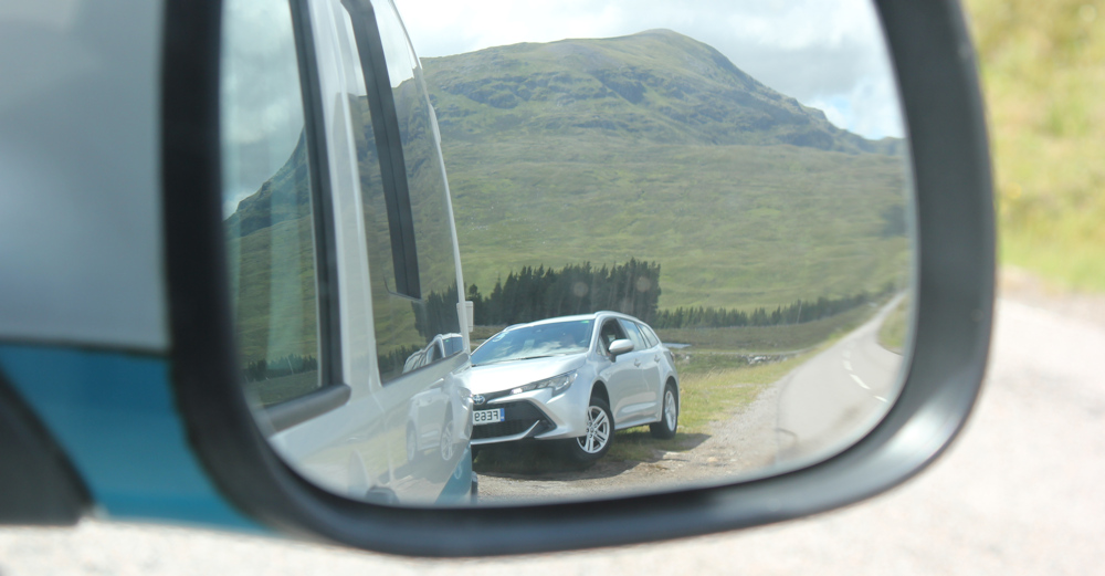 Something weird happens while I’m collecting the bike. I’m just wheeling Scooty back towards the van, when a car comes up behind me and pulls off the road into the layby. But… the driver misjudges the layby, and pulls off too early.