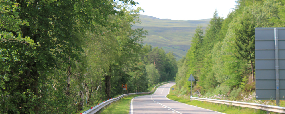 I wasn’t looking forward to this section – a trudge along the edge of a busy A road – but my mood becomes buoyant and everything suddenly seems bright and wonderful. The sun is shining, I’m on my way to Ullapool, and all is good with the world.