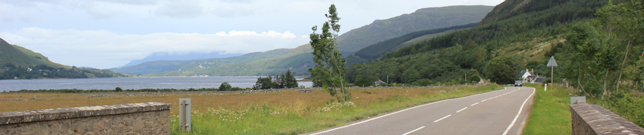 Across the bridge, and I feel a thrill of joy. There, finally, I can see open water again. I’ve reached the top of Loch Broom. Not far to Ullapool now.