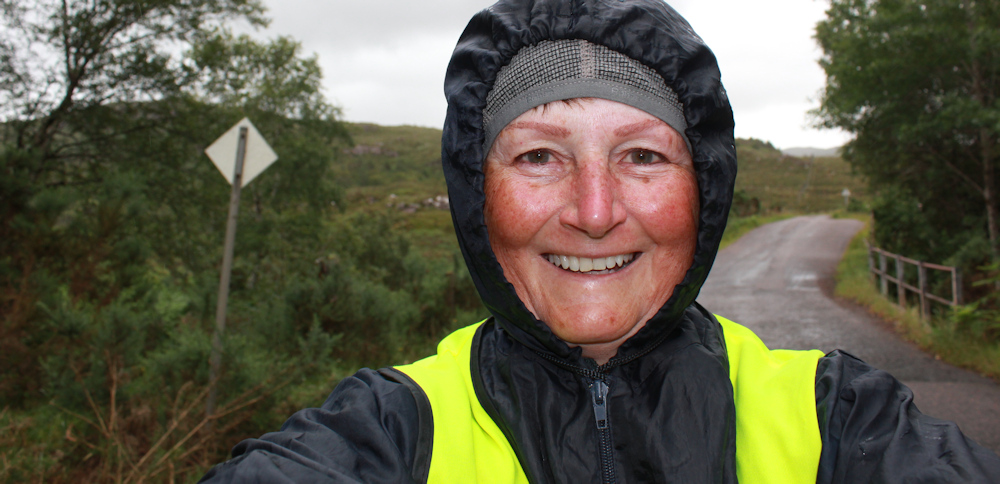 Half an hour later, the rain eases off. I take photos of the misty views, snap a shot of a squashed adder lying on the tarmac, and then the same cyclists pass me on the road. I catch a photo of their backs. They’re riding fold-up bikes with small wheels – similar to my Scooty bike, but without the electric assist.