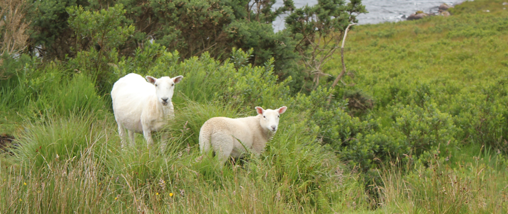 I’m walking above a loch called Loch Lurgainn. It’s boomerang shaped, and has an un-named island lying close to this shore. I think I can see sheep over there. How did they get there? Did someone ferry them over?