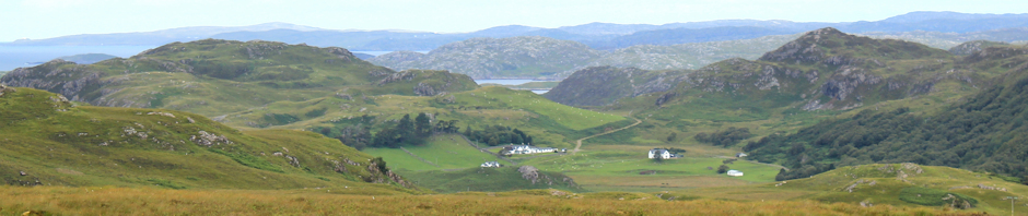 Beyond the fish farm, the road bifurcates. The main public road swings round to the right, while the branch to the left goes to Inverpolly Lodge.