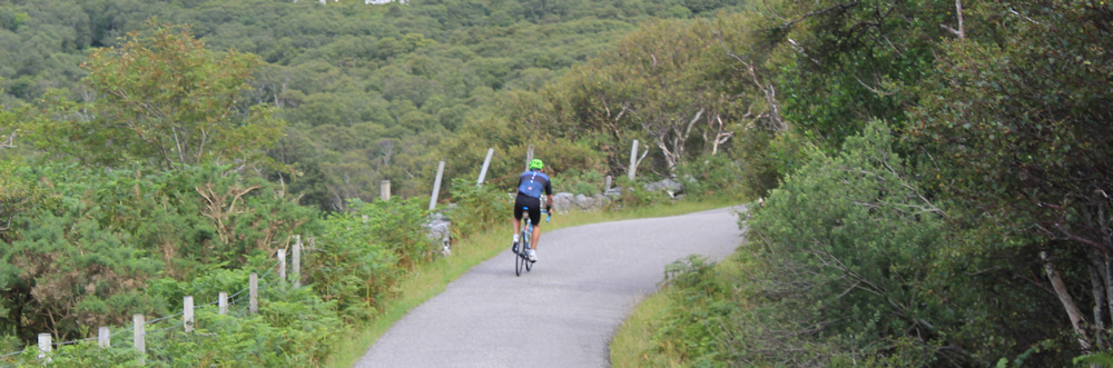 A cyclist overtakes me. He has been freewheeling down the river valley and cruising round the curves of the bay, but I know he is going to have to start working hard in a moment, because I know what’s round the next corner…