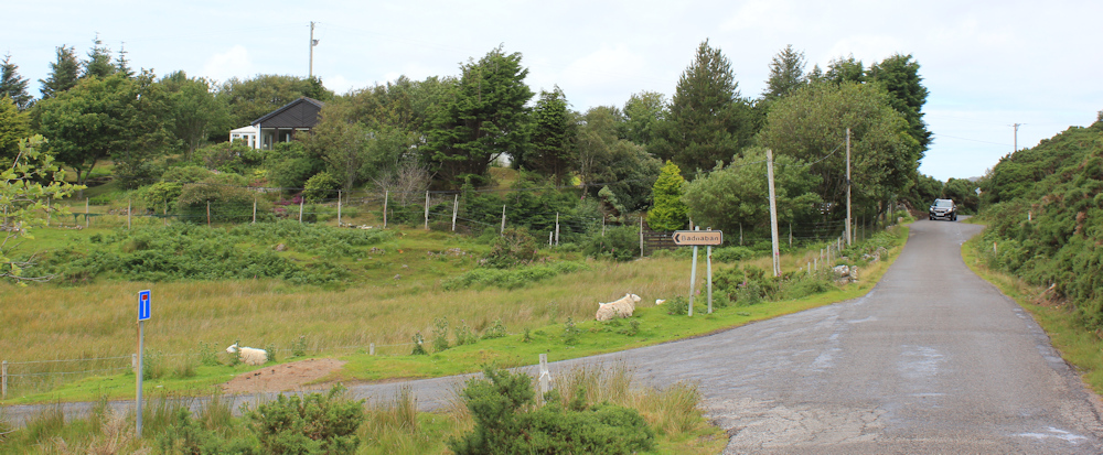 Past some more cottages, and more sheep, I reach the turn-off to Badnaban. Noticed this place-sign earlier on my cycle ride, and so I now realise I’ve nearly finished my walk.