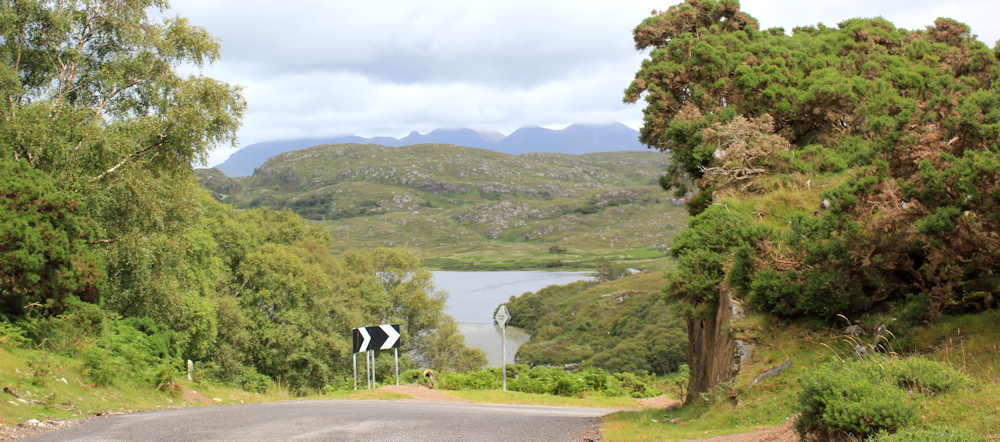 What a view, looking down onto Loch Culag, as the road twists around and drops down one last steep slope.
