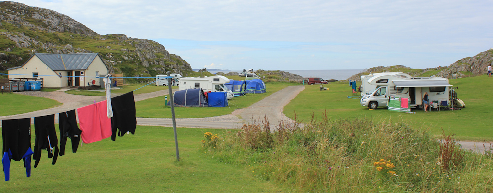 When I was camping in Ardmair in July, some fellow campers recommended this campsite at Clachtoll. “It’s really beautiful and well maintained. At night the owner lights a fire and people gather round and cook barbeques and sing songs.” It sounded idyllic, but the place was full when I tried to book it.