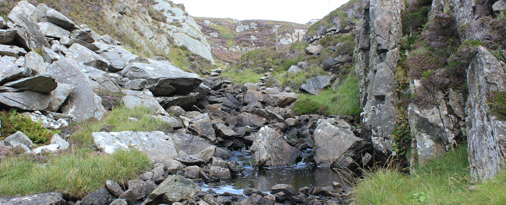 Continue climbing up the valley, which narrows, so that the last section is along the rocky edge of the stream. Lovely. Where’s the path gone? Better not fall in.