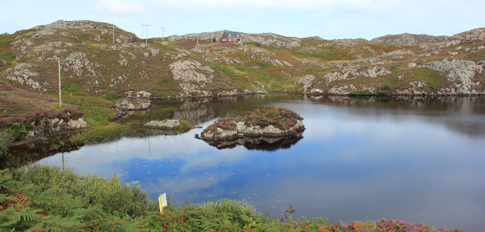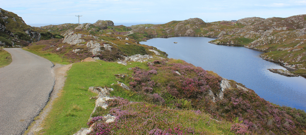 The road passes over a rise and I stop to admire the view below me. A beautiful series of interconnecting lochs and lochans. And nothing else in sight.