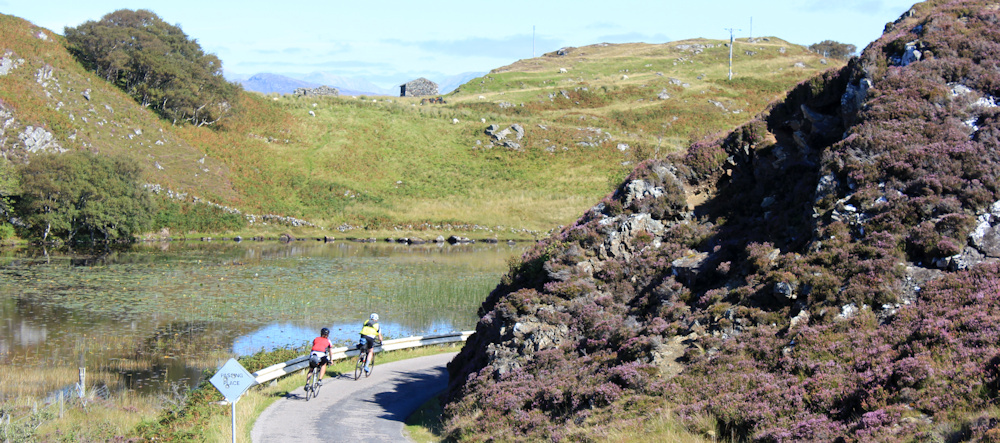 Check my map. The loch is called Loch Ruighean an Aitin, but the mountains are off the map, so I don’t know what they are. On the way down to the loch, I’m overtaken by a couple of cyclists…