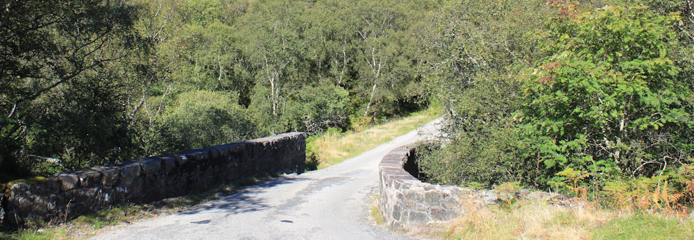 Down the hill I go. Punishingly steep on the knees – I must say, I now prefer going uphill to coming down! At the bottom of the valley, surrounded by trees, is another river – the Allt Ardbhair – and another bridge.