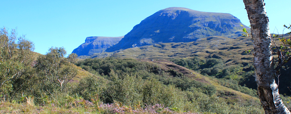 Later, with access to Bing Maps, I discover that Sail Ghorm is part of an impressive range called Quinag, now managed by the John Muir Trust and part of a project to restore natural landscapes to the over-grazed region.