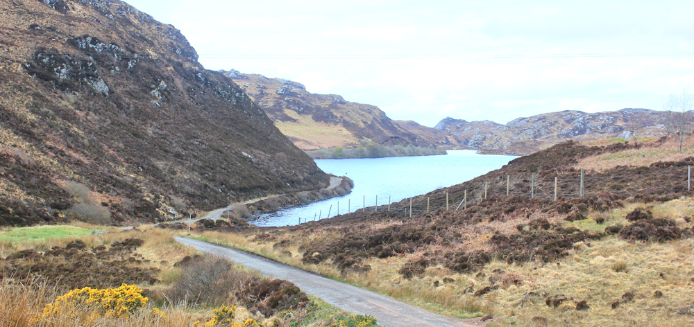 The road basically circles round the bottom of the loch and rises up the other side of the valley.