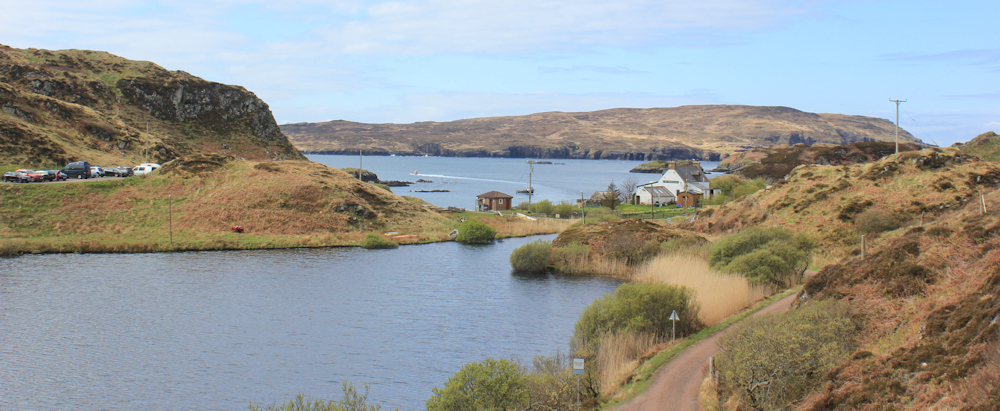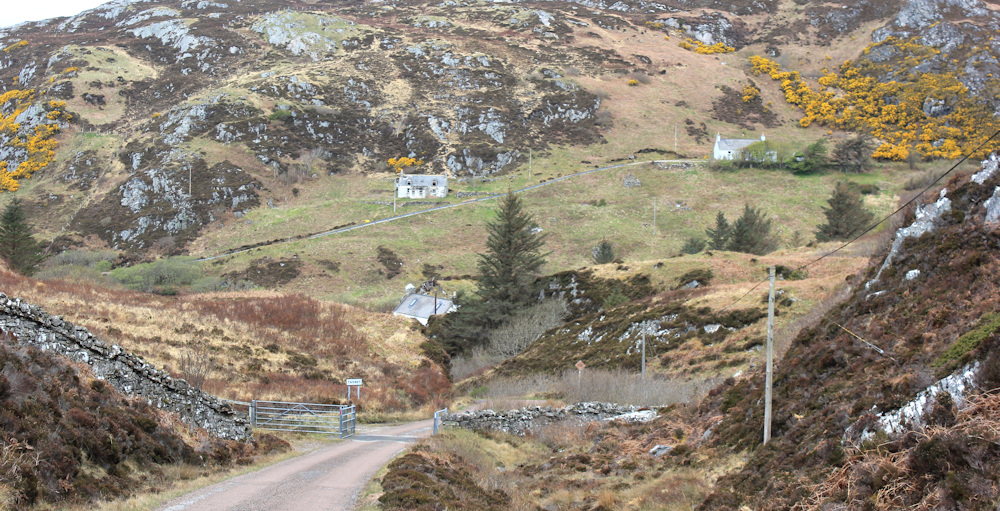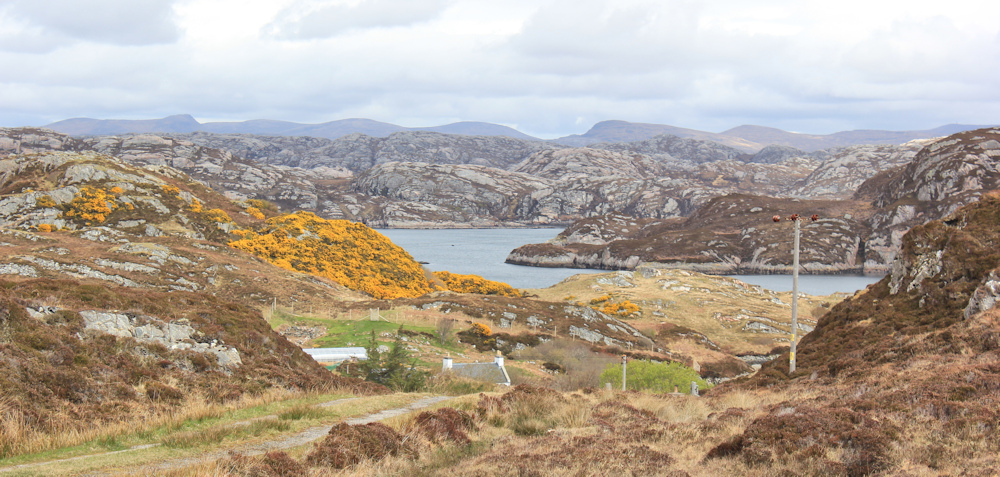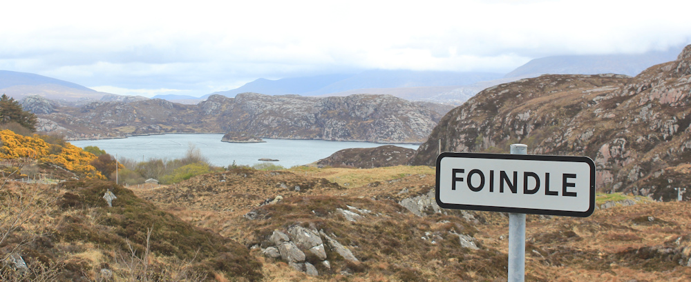 The real village of Foindle is reached via a side road, which I don’t go down. It seems to consist of a few scattered houses, but with a great view over Loch Laxford, and a fish farm.
