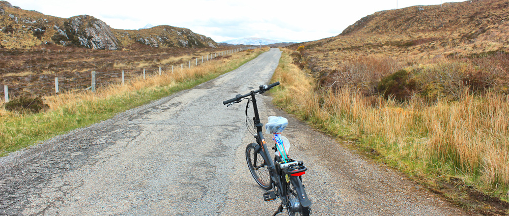 I’m approaching the end of the road, where it meets the main road. At this point, I am allowed to hop on my bike and cycle the three miles down to Scourie. Downhill most of the way. Wheeeeeh!