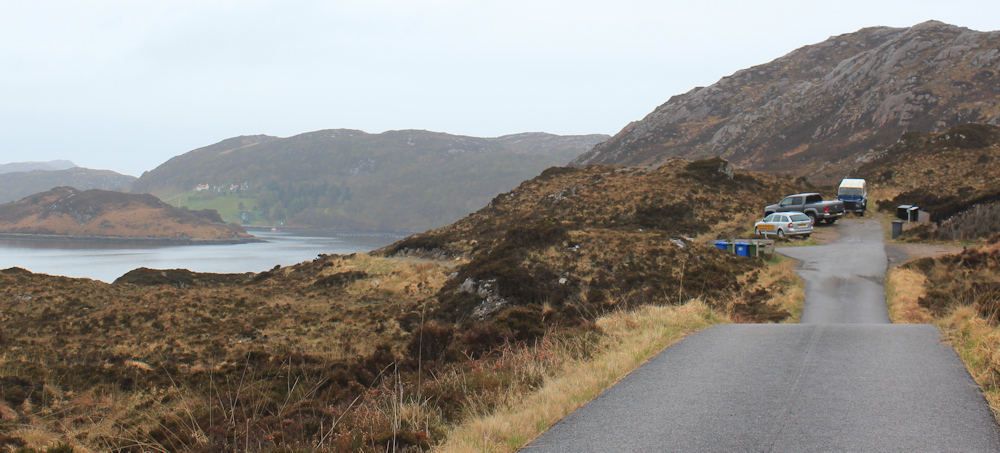 Towards the end of the road, I spot a small car park and an expanse of water. Loch a’Chadh – Fi. It’s a sea loch that empties into my old friend, Loch Laxford.