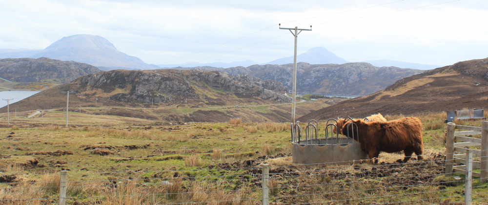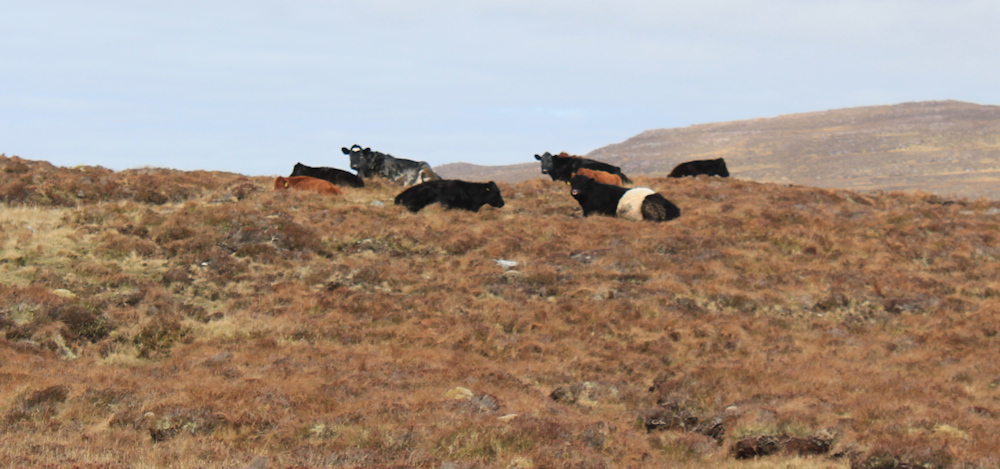 The countryside looks empty, but there are quite a few scattered crofts and houses dotted about, and in reality every inch of land seems to be fenced off. This ‘field’, for example, contains a group of Angus and Belted Galloway cattle.
