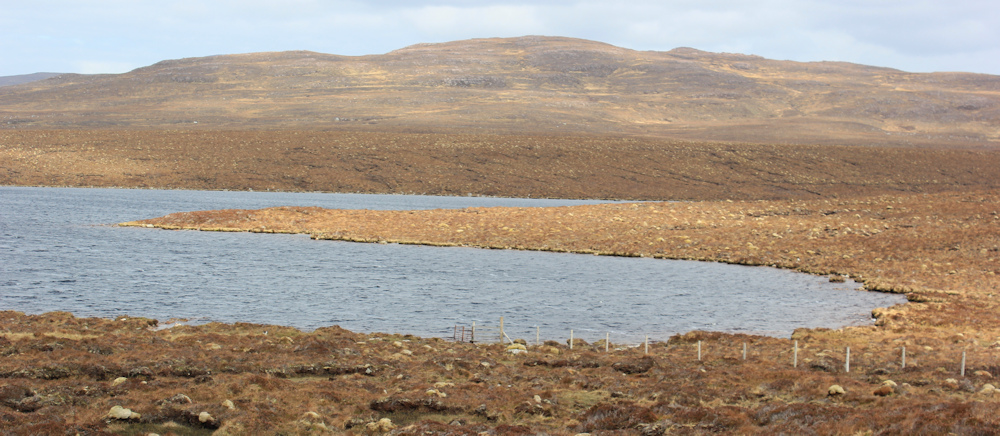 On my right is Loch Aisir Mor. Desolate looking, with featureless hills behind. No trees. No bushes. Empty – except for fences.