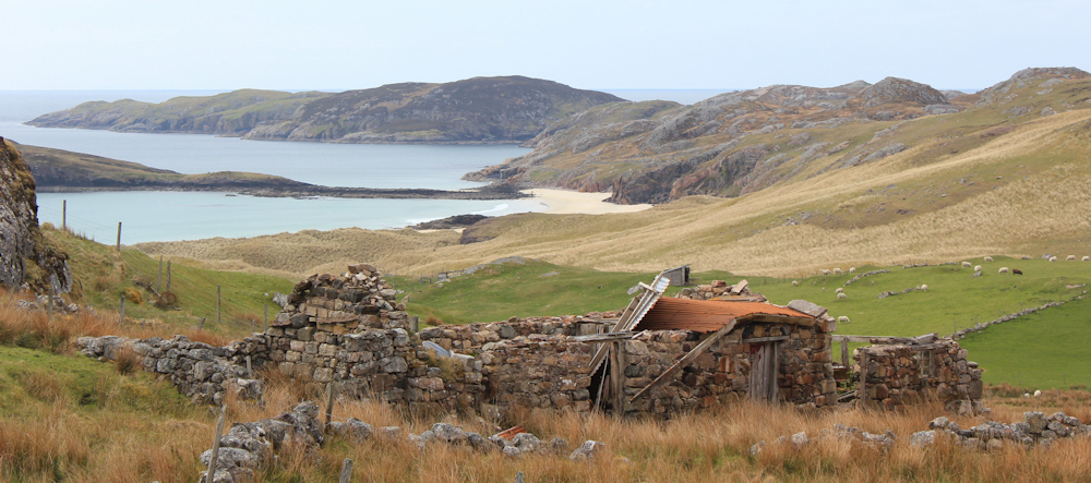 Oldshoremore features prominently on my map – by which I mean it is written in letters that rival Kinlochbervie in size. But the reality is very different. Oldshoremore is basically a spaced-out collection of crofter’s cottages and converted barns – some more converted than others! At least I can see the sea again. What a pretty little bay.