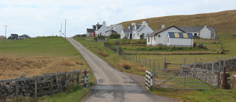 I’ve nearly reached the top of the hill. Oldshoremore (Aisir) says a place sign, although there is nothing in sight. Then, just over the brow of the hill, I see some houses below me. Ah, that must be Oldshoremore.