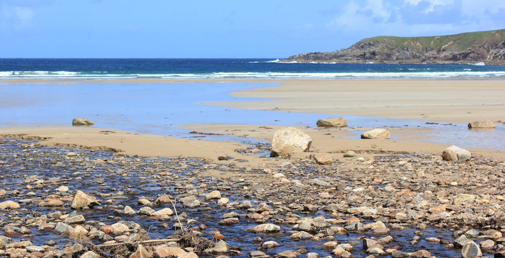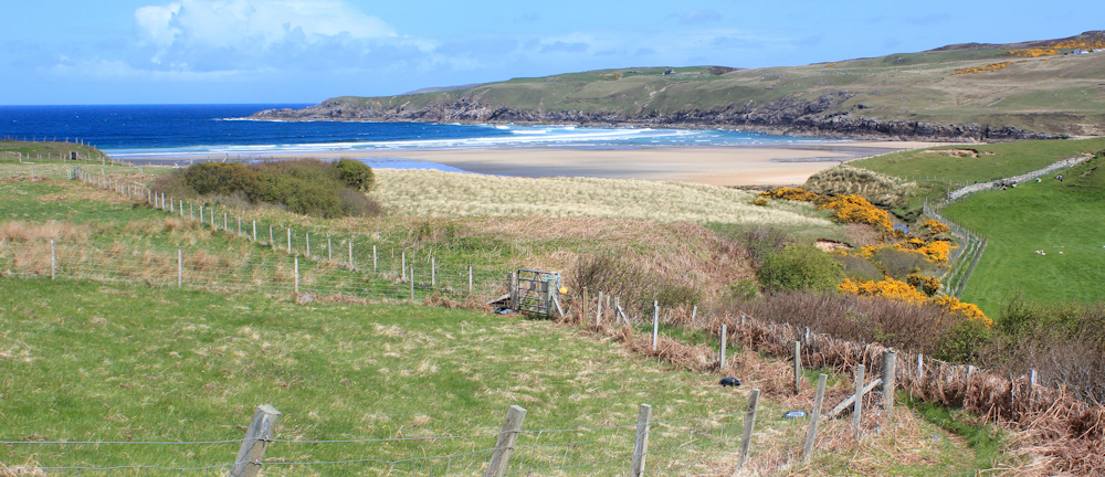 After my struggle this morning when I cycled against wind and sleet, I had planned to call it a day at this point. But now, refreshed from a lovely beach walk in glorious sunshine, I decide to carry on to Strathy Bay.