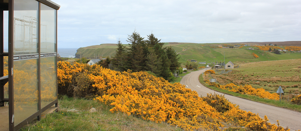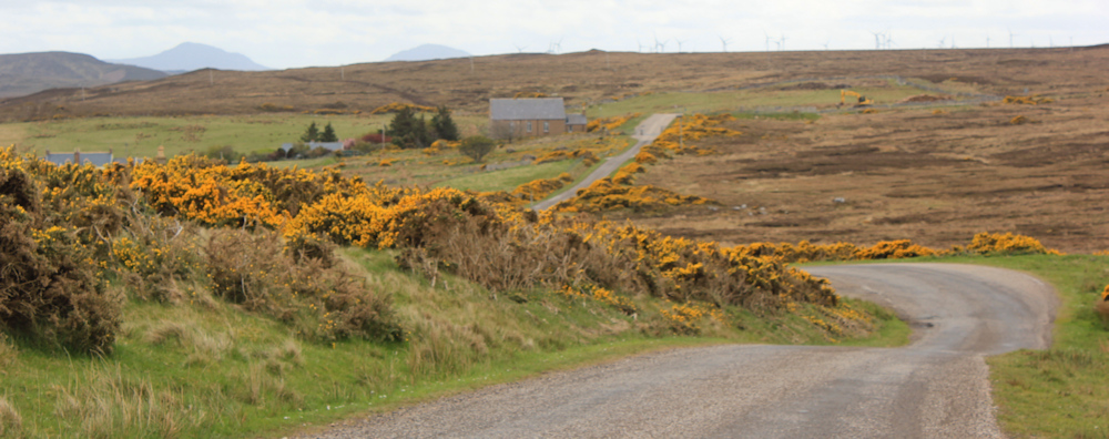 The road is pleasant enough, with the usual mix of desirable residences, old cottages, run-down crofts, delapidated caravans, and storage areas full of junk.