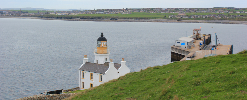 This is where the road really ends, but a footpath signs indicates the way to Holborn Head. It is quite a steep scramble up a field – but I get great views looking down over the lighthouse and the dock at the end of the port.