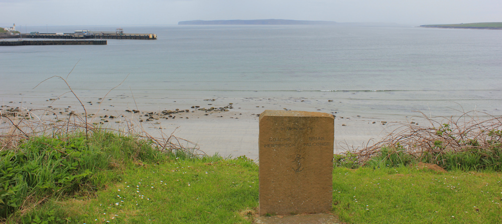 Pass a memorial stone. In memory of Coachie Henderson and Brian Falconer, with an anchor sign. Seamen, I presume. Wonder if they were lost at sea in some tragedy, or died as old men in their beds – the stone gives no indication.