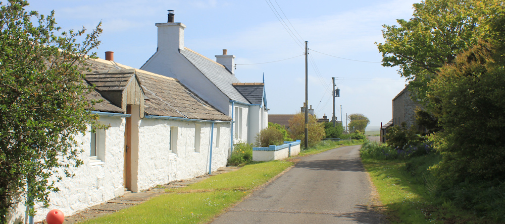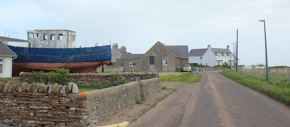 Scarfskerry is another one of those strung-out Scottish villages. Some of the houses are renovated and there are one or two smart new-builds. But most of the housing consists of small cottages in various stages of disrepair.