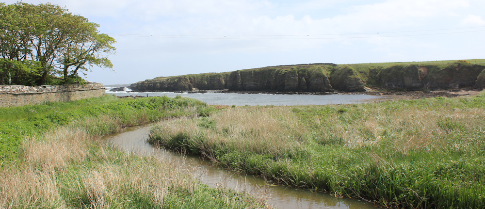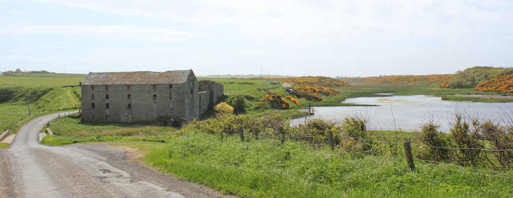 The mill is situated on the bank of a stream, called the Burn of Ham. I stop on the bridge over the burn to take photographs. The water empties into the sea shortly below the mill.