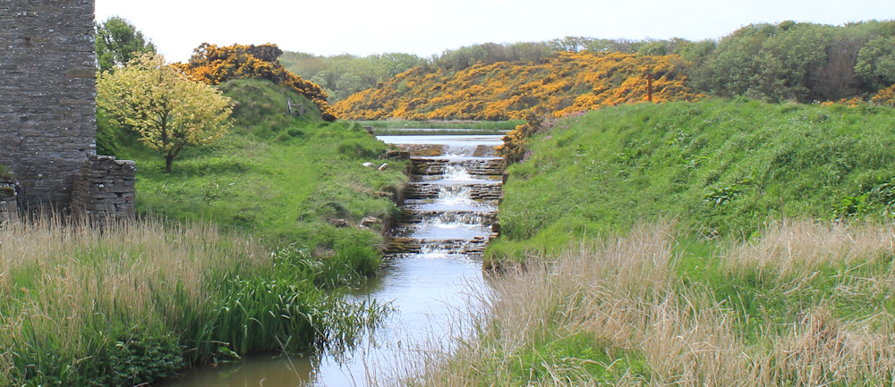 Looking upstream, I can see an artificially created watercourse that connects the mill pond above with the sea.