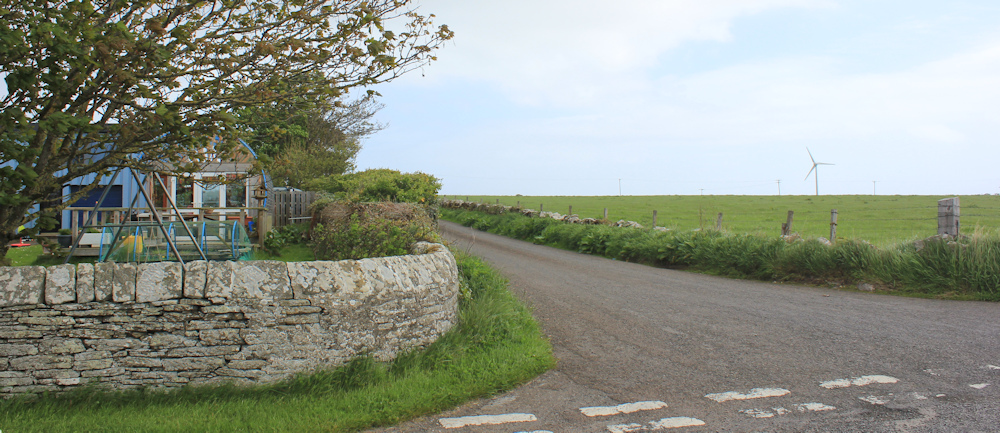 About a mile along this road, I come to a school in the middle of nowhere. But the school is definitely being used – there are cars parked outside. Just beyond the school, I reach a side road which leads to a place called Scarfskerry.