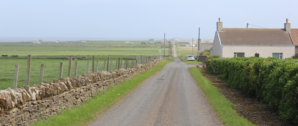 The road to Scarfskerry turns out to be a long one. The first section is uphill. When I check my map, I discover this hill has a rather grand name – Hill of Rattar.