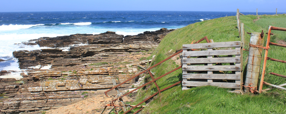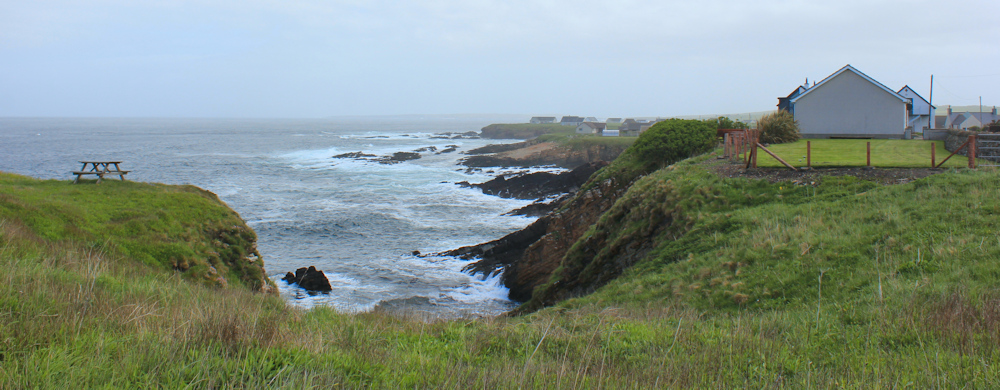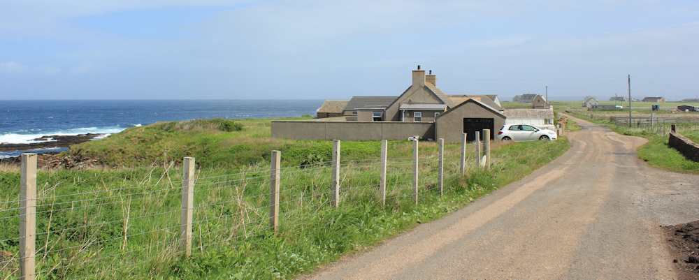 But, I turn left towards Scarfskerry. I may not be able to walk along the shoreline itself, but this road runs roughly parallel to the coast and is the closest I can get.