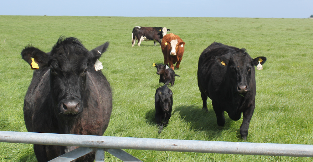There are cattle in the fields. These mothers seem very friendly and come over to see me, bringing their tiny little calves with them.
