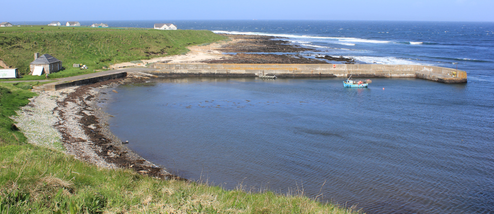 Ah, here is Harrow Harbour. The harbour is set in a natural bay (Wester Haven on my map) with a man-made pier giving extra protection from the rolling waves. Another one of those tiny fishing boats makes the harbour look much bigger than it really is.