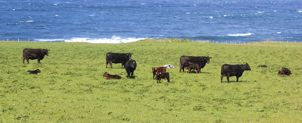 The fields to my left contain cows with their calves. I’m glad in retrospect that I didn’t manage to climb over the fence – because I would have been trapped between the edge of the sea and fields full of cattle.