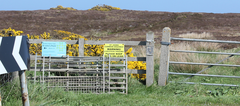 Turning left would take me to St John’s Point, but she had indicated the beautiful bay was reached by a path going straight ahead, and so that is the path I take. It doesn’t look very promising at first. Athough the path seems well-trodden, the bracken and gorse on either side are rather dull.