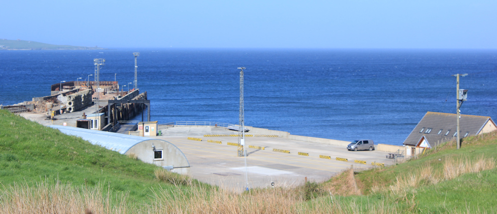 Below me is a rather untidy looking wharf. Construction going on. Strange. I thought this was the main ferry port for the Orkneys?