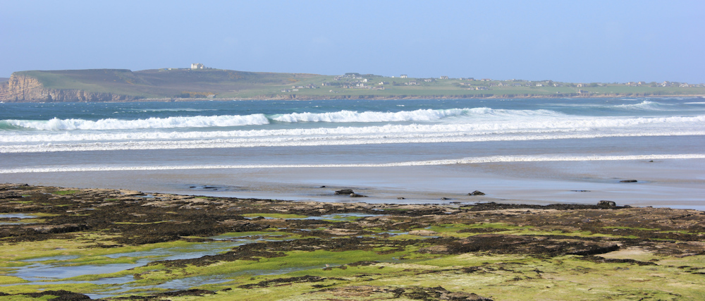 On the way, I stop at Dunnet Bay. The ferocious wind has dropped, and the beach looks delightful in the sunshine. I sit on the step of my van, drink a can of coke and eat a Tunnocks chocolate bar, that the hotel – bizarrly – provided for breakfast. Then walk to the edge of the shore and take photos of the white breakers.