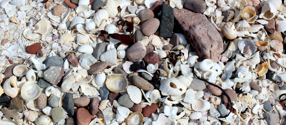 The white “sand” turns out to be made up of broken shells. I stop to pick up a few of the more intact ones. Hard to imagine on this beautiful afternoon, but the breakages must reflect the power of the waves on stormy days.