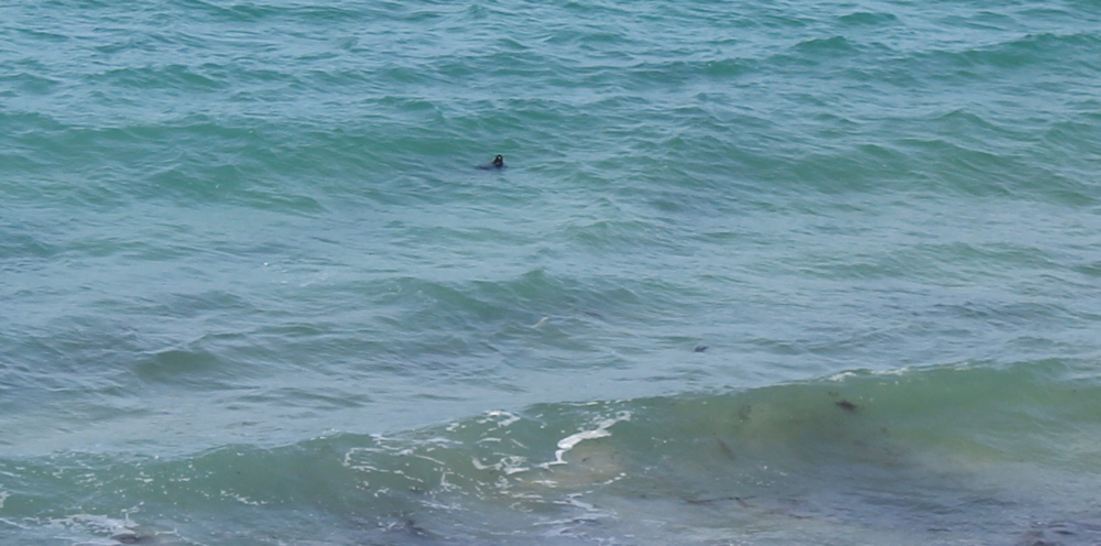 There is movement in the water below me. A seal! I take a photograph but the seal is to far away to see clearly.