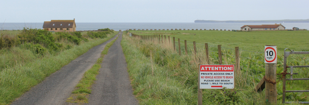 After walking down the main A99, I turn off to the coast down a side road. This is marked as a “Core Path” on the online map – just as well I know this, because the “Private Access” sign is a little offputting!
